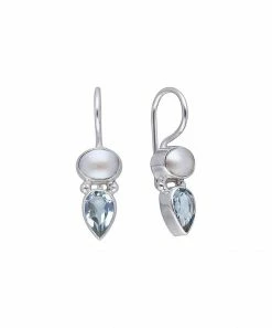 Coupon π YS Gems Natural Blue Topaz & Natural White Topaz Baguette-Cut Drop Earrings π₯°