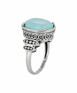 Discount π YS Gems Aqua Chalcedony & Sterling Silver Milgrain Bezel-Set Ring π