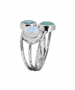 Brand new β¨ YS Gems Moonstone & Aqua Chalcedony Three-Stone Ring π