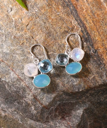 - Sterling silver / aqua chalcedony / blue topaz / moonstone