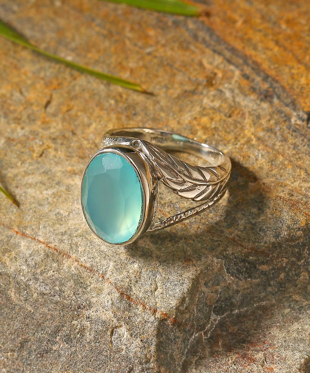 - Sterling silver / aqua chalcedony