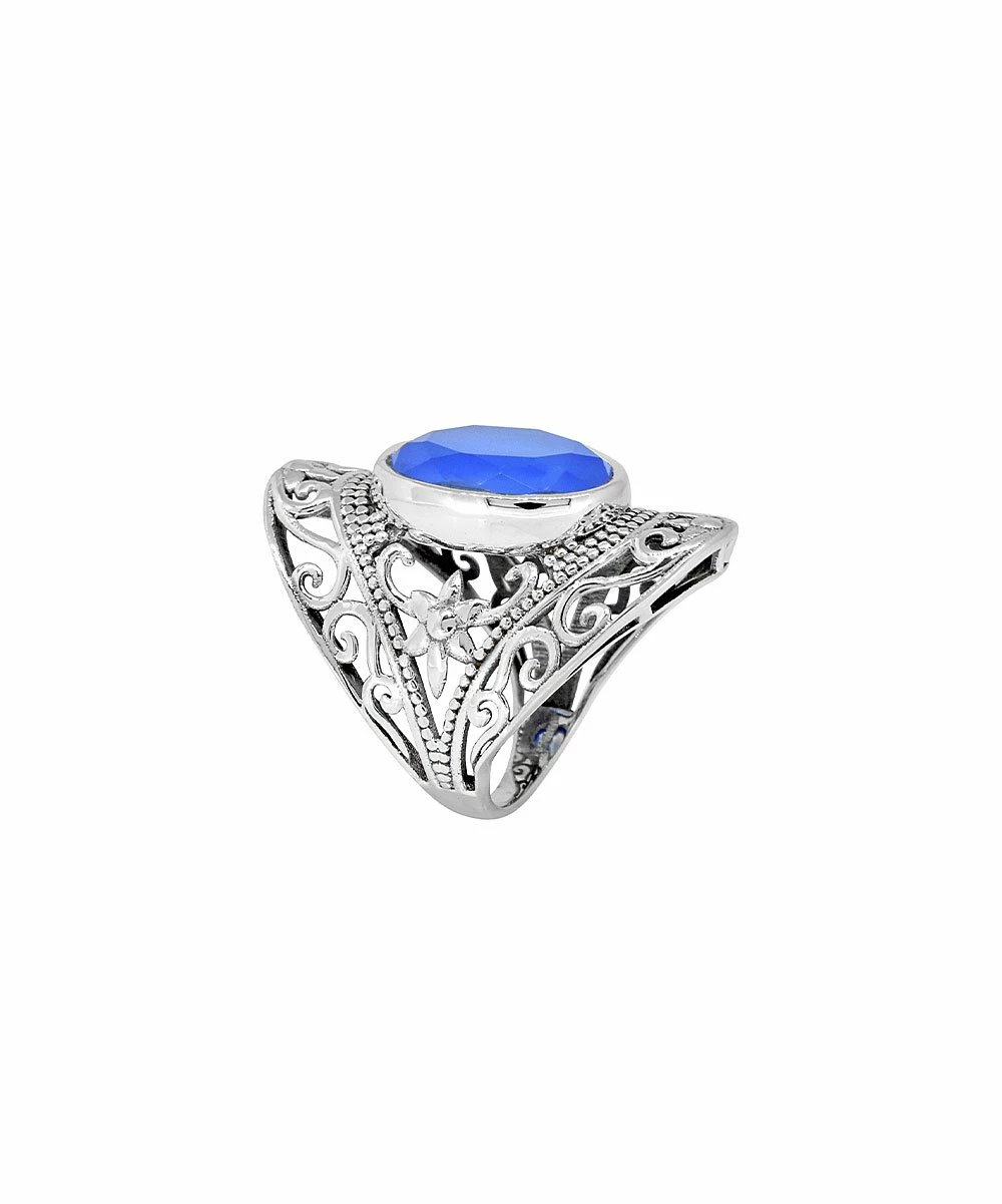 Stylize your digit with idyllic shimmer brought by this sterling silver and blue chalcedony ring.