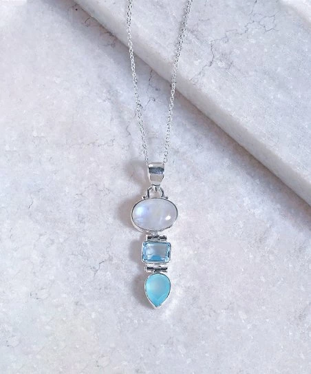 - Sterling silver / moonstone / blue topaz / aqua chalcedony