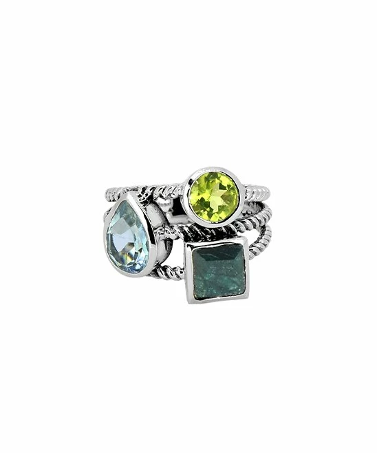 - Sterling silver / blue topaz / corundom emerald / peridot