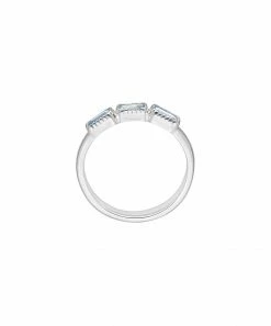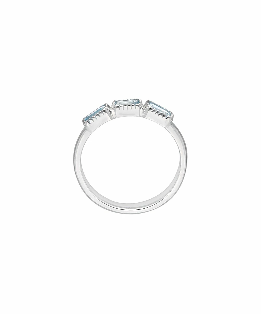 This ring adds charming appeal with its row of baguette cut blue topaz on sterling silver band.