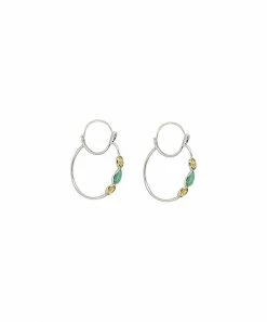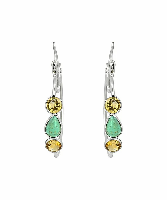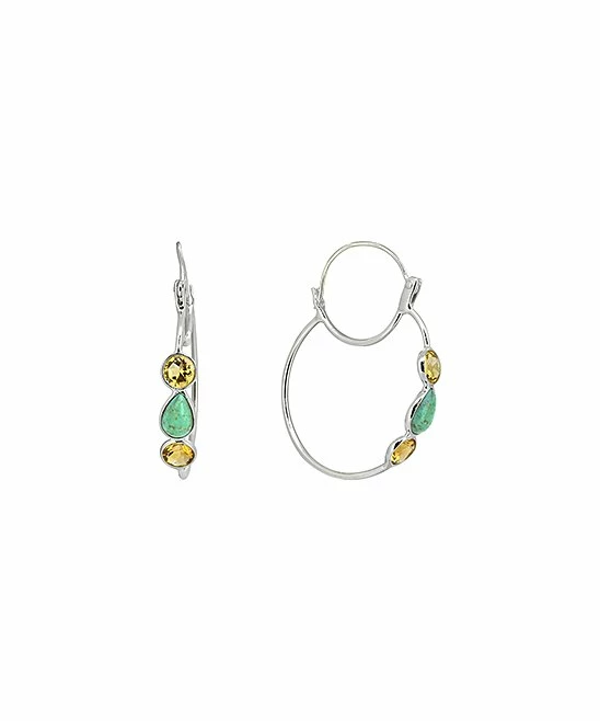 Unique sterling silver hoop earrings featuring vibrant citrine and blue Mohave turquoise.