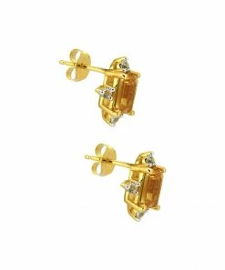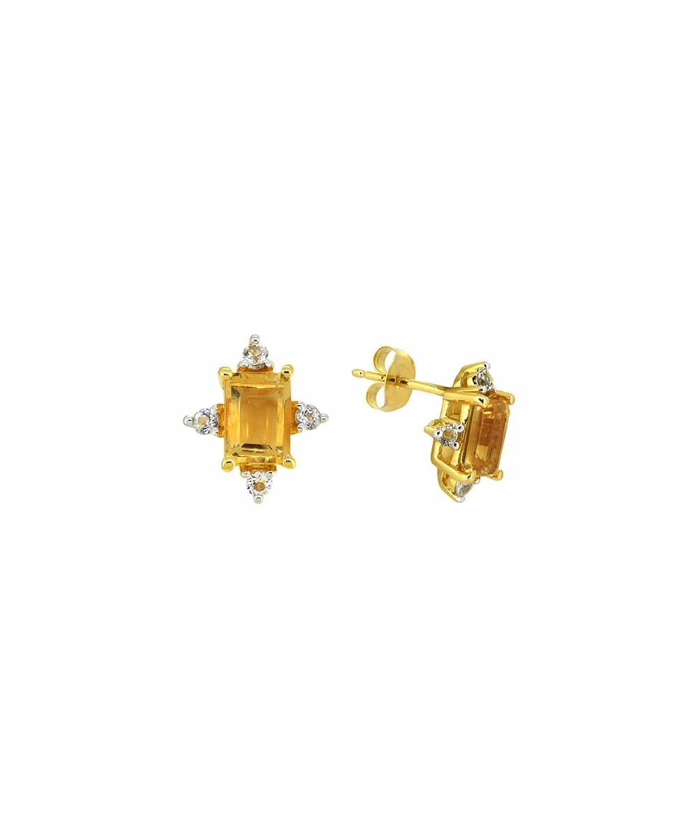 With 14-karat gold plating, these stud earrings sport an elegant cushion cut and a cluster of gemstones to dazzle up any ensemble.