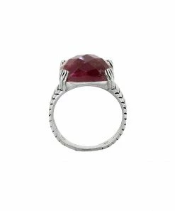 This shimmering corundum ruby ring is framed by shining sterling silver.