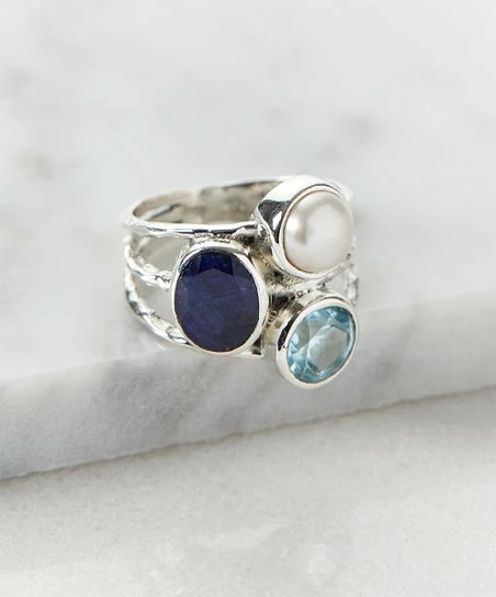 - Sterling silver / corundum sapphire / blue topaz / cultured freshwater pearl