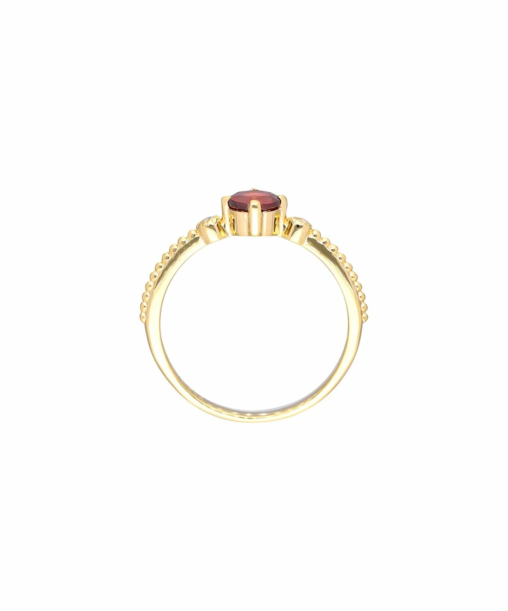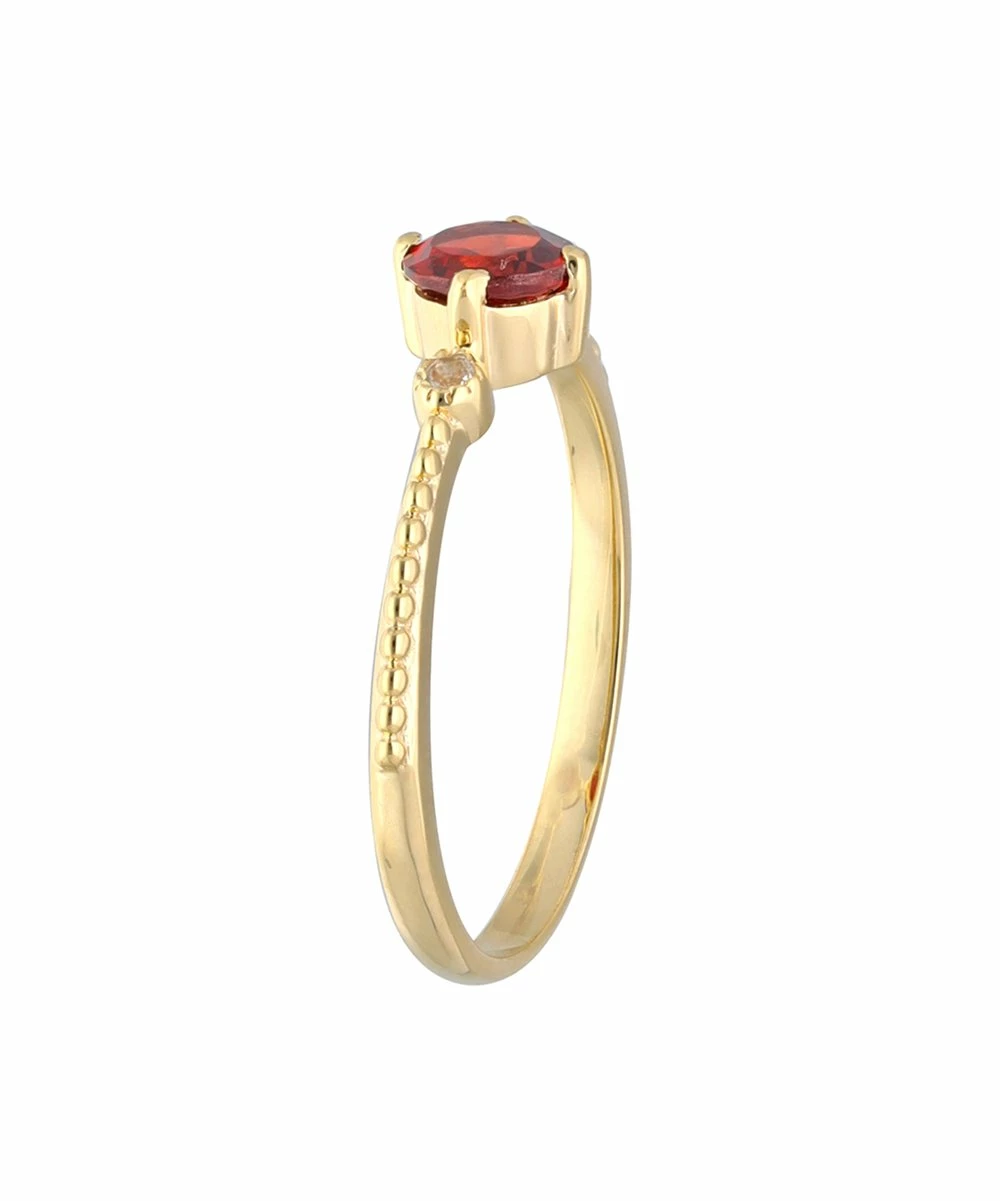 Accessorize with charm wearing this garnet ring featuring white topaz details on a twisting 14k gold-plated band.