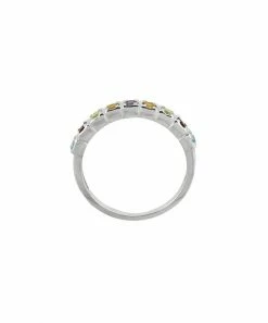 Enhance your ensembles with this sterling silver band offering a raised row of prong-set, natural gemstones for a touch of polished sparkle.