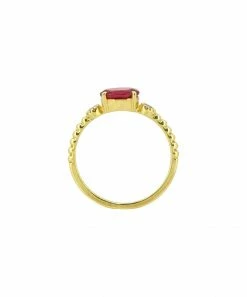Accessorize with charm wearing this lab-created ruby ring featuring side details on a textured 14k gold-plated band.