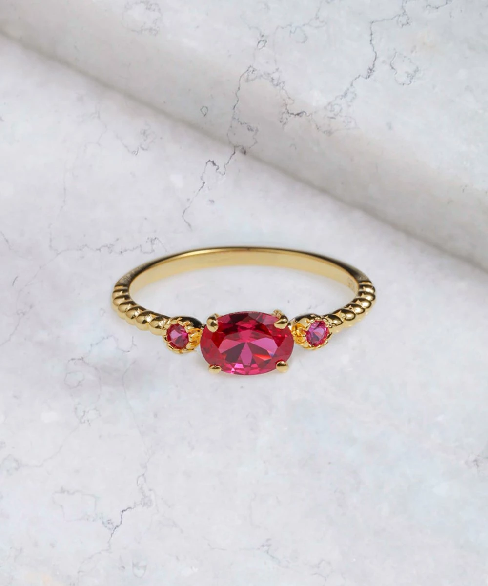 - 14k gold-plated sterling silver / lab-created ruby