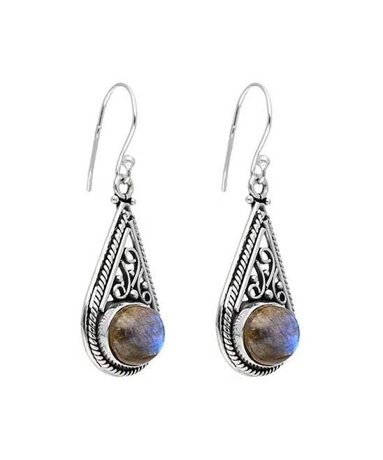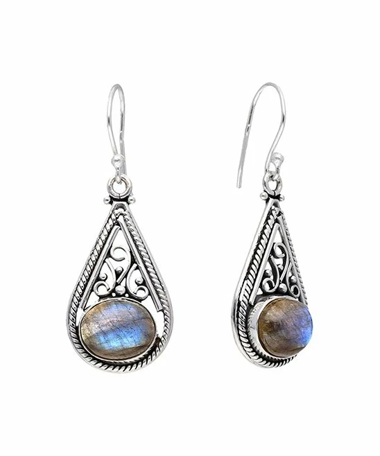 Teardrop earrings featuring bold labradorite on shining sterling silver.