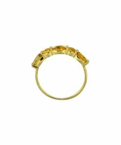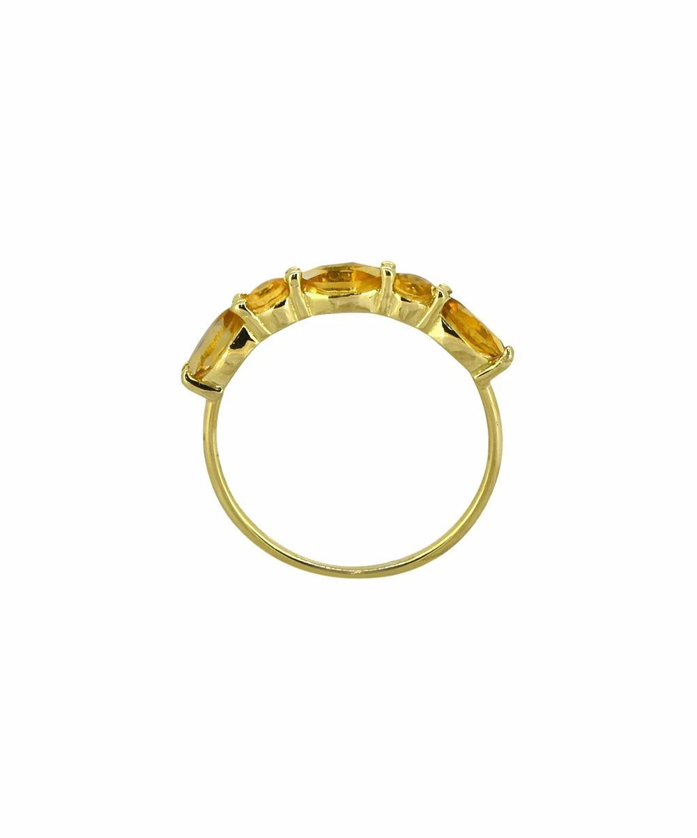 This stunning ring features five sparkling citrine stones in alternating marquise and round cuts set in 14-karat gold-plated sterling silver.
