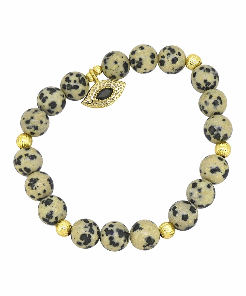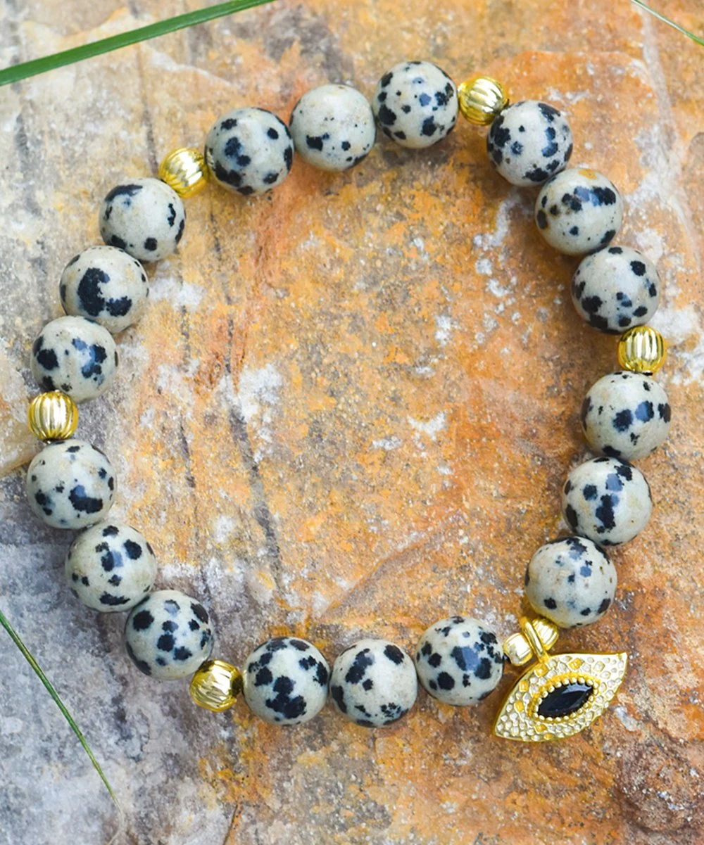 Natural dalmation spinel and 14k gold-plated accents add subtle sparkle to this beaded bracelet.