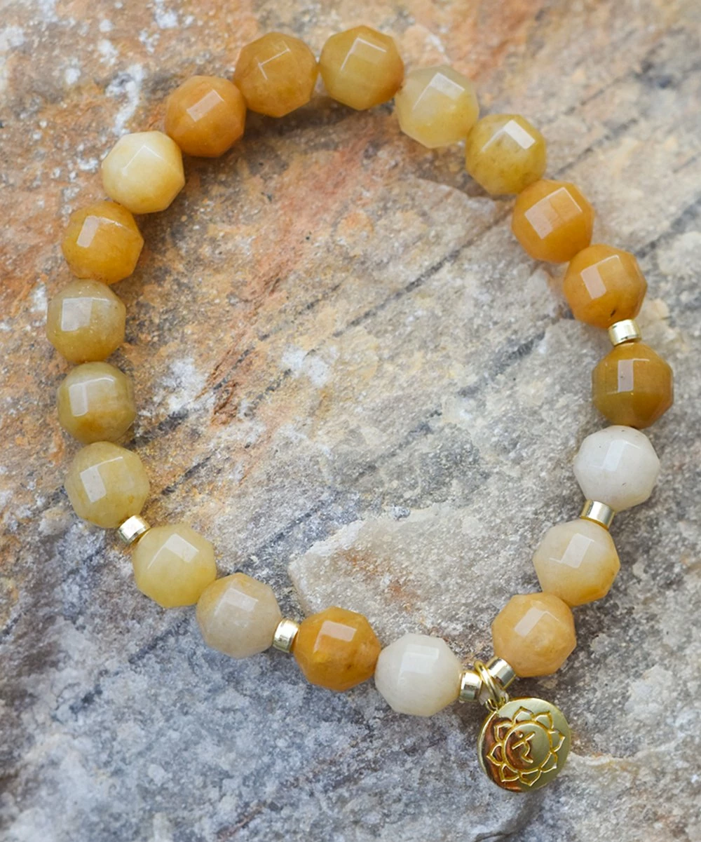 Natural yellow aventurine and 14k gold-plated accents add subtle sparkle to this beaded bracelet.
