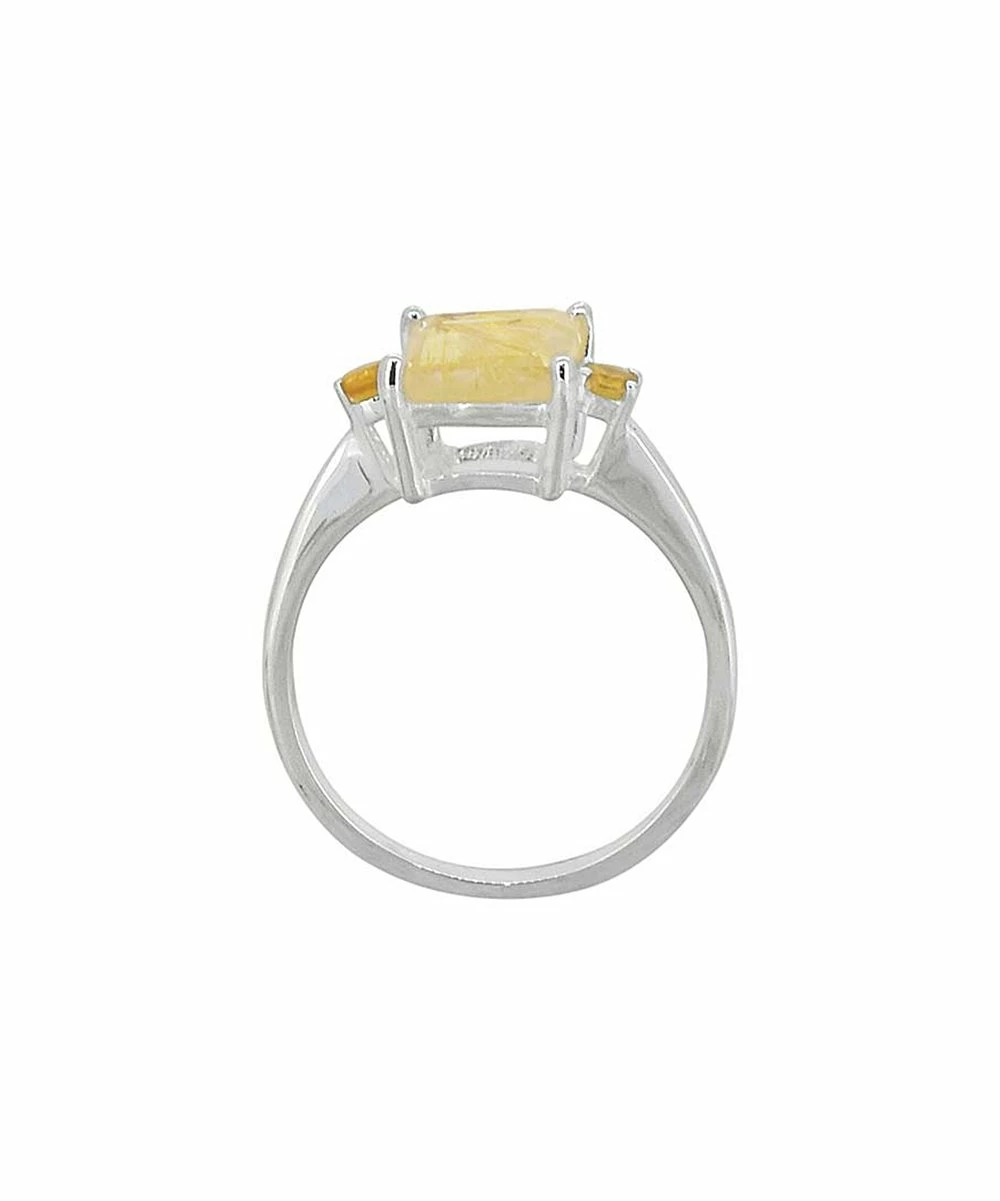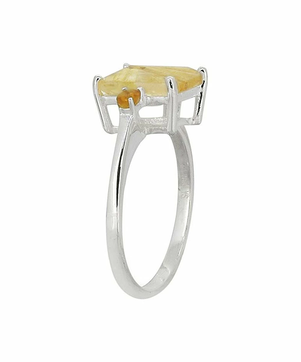 Add subtle sparkle to your everyday look with this earthy ring made with sterling silver and emerald-cut yellow quartz gemstones.