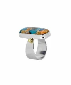 Slip on this ring featuring a prominent oyster Mohave turquoise gemstone that helps to bring a subtle pop of color to neutral-toned looks.