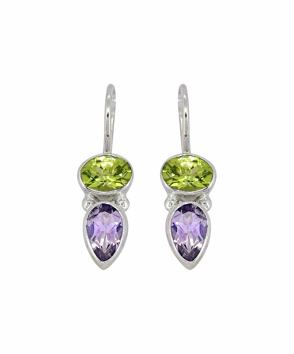 Add a pop of color to your ensembles with these gorgeous drop earrings featuring peridot and amethyst accents.
