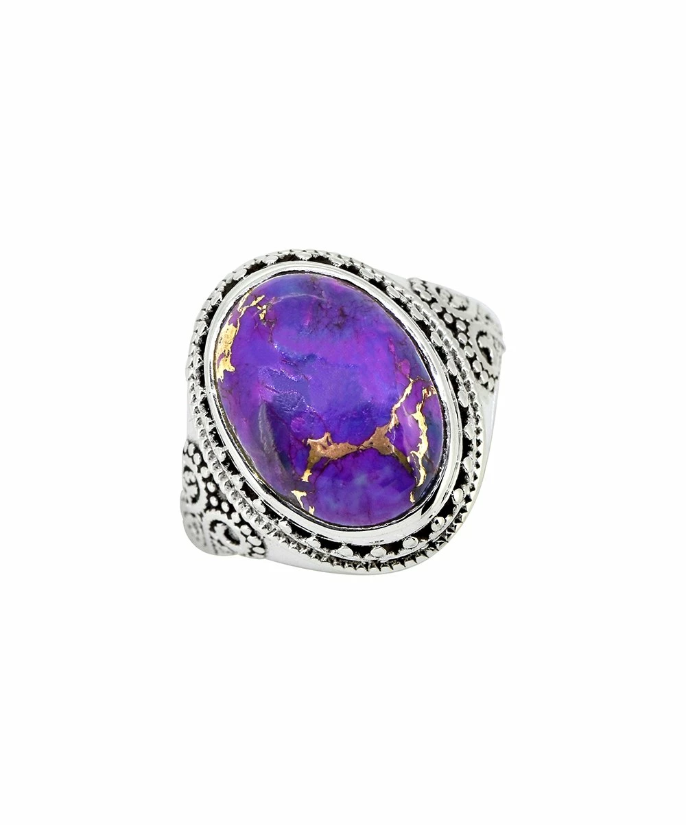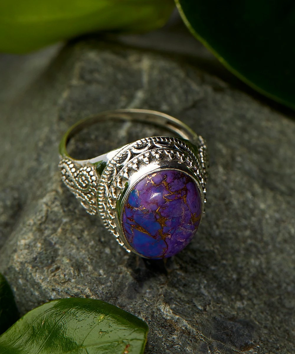 Your accessory collection gets an earthy upgrade with this sterling silver ring that features a gorgeous purple accent.