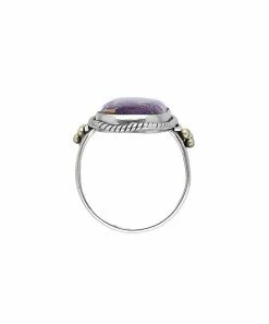 Add some color to your touch when you slip on this rectangular ring featuring purple copper turquoise set in sterling silver.