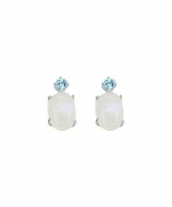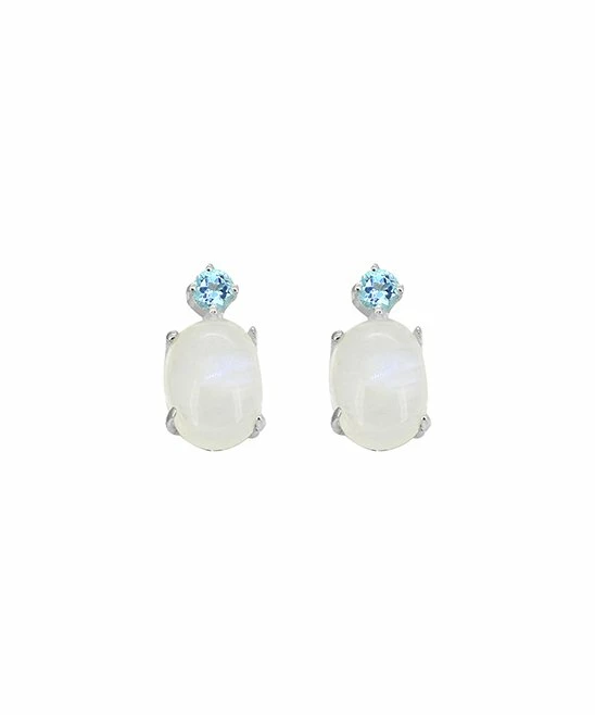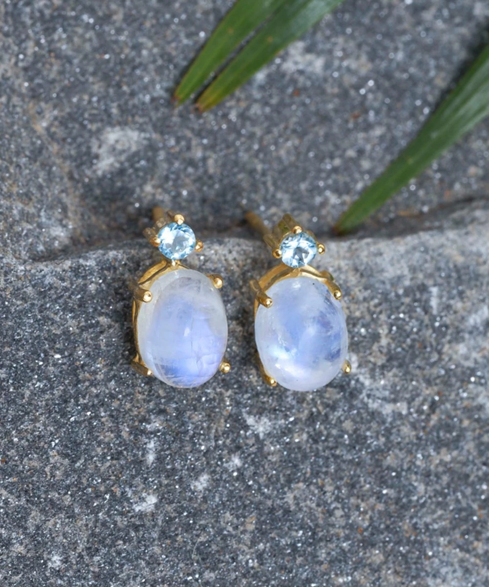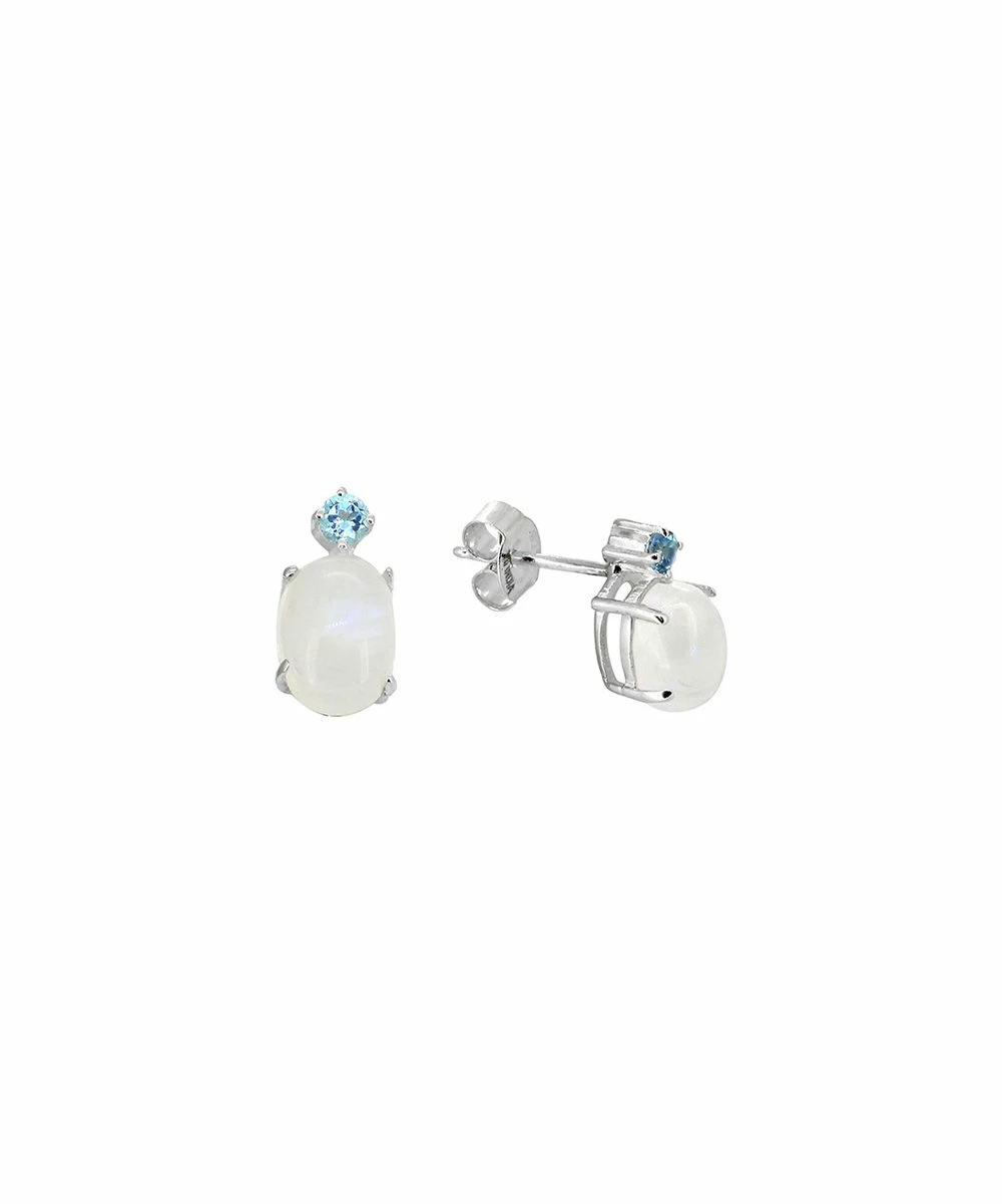 Express bold style wearing these rainbow moonstone drop earrings with blue topaz details.