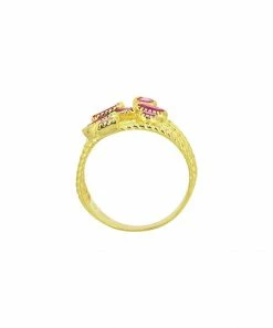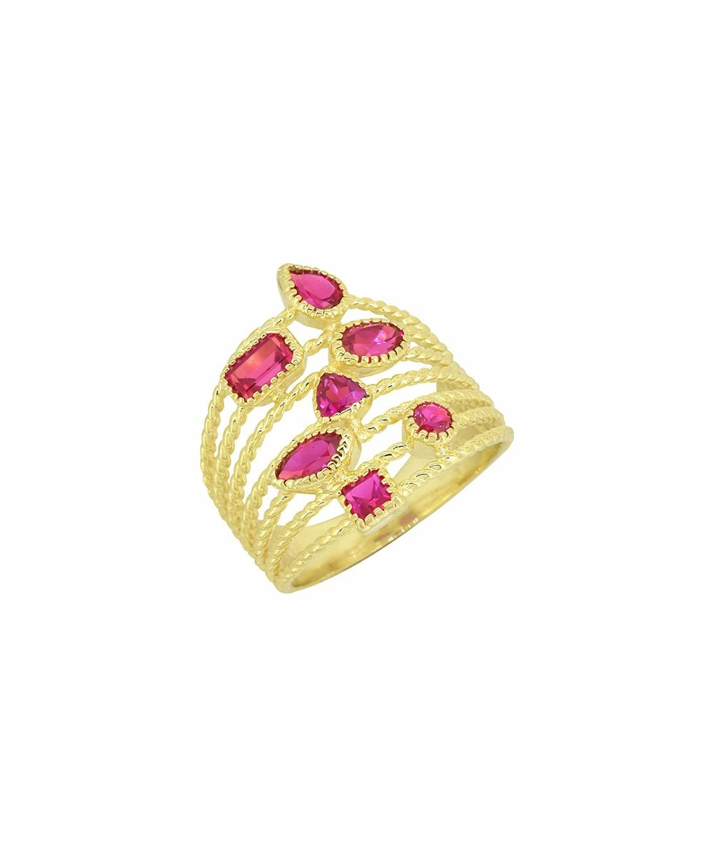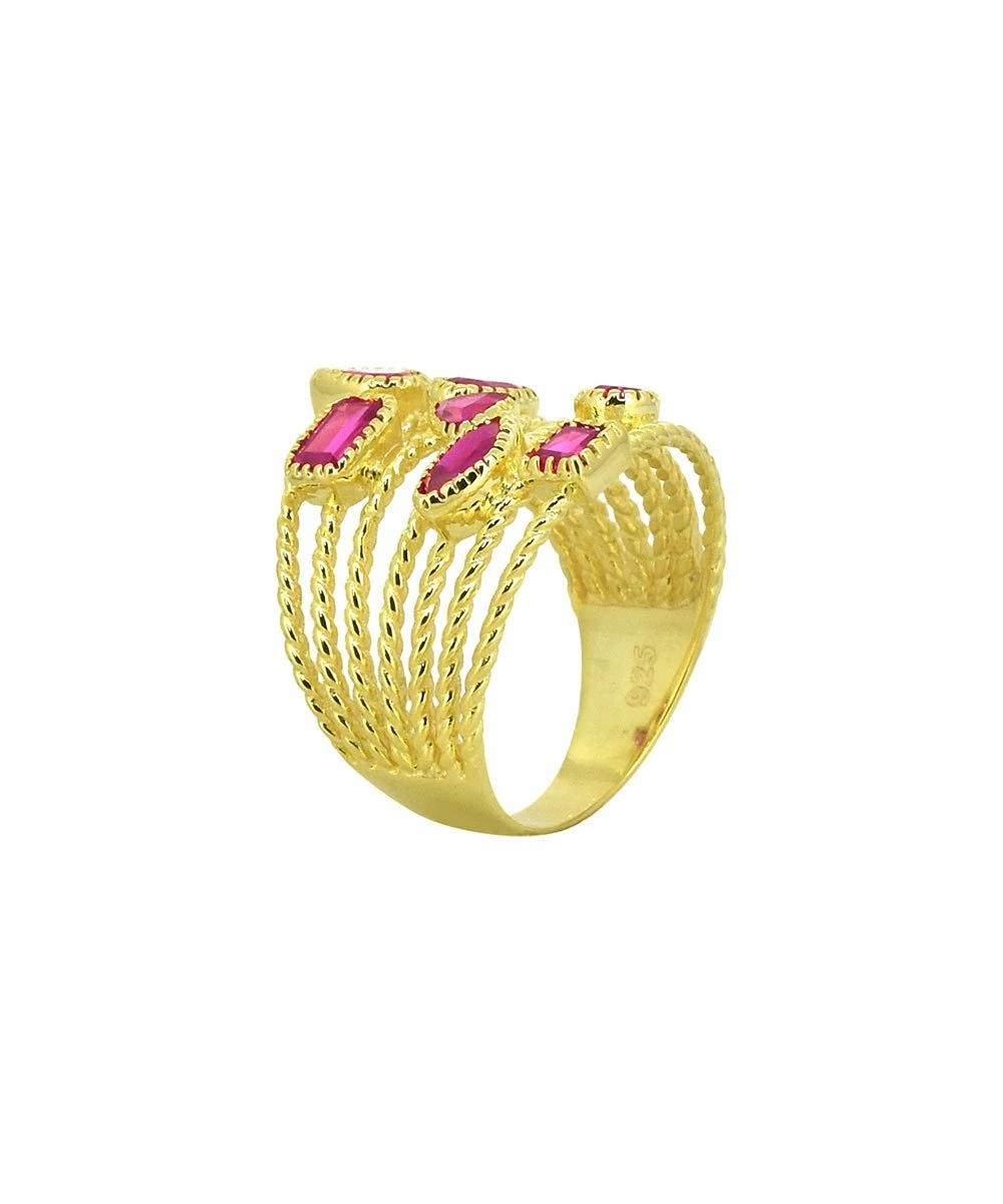Mixed-cut synthetic rubies are artfully scattered across this 14-karat gold-plated ring designed with twisted layers.