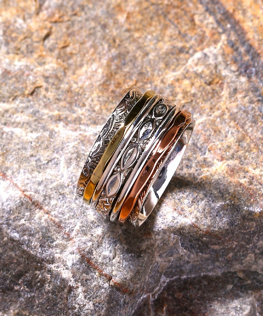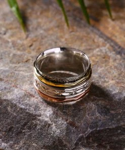 Add a bold statement to your day or evening look with this modern tri-tone band.