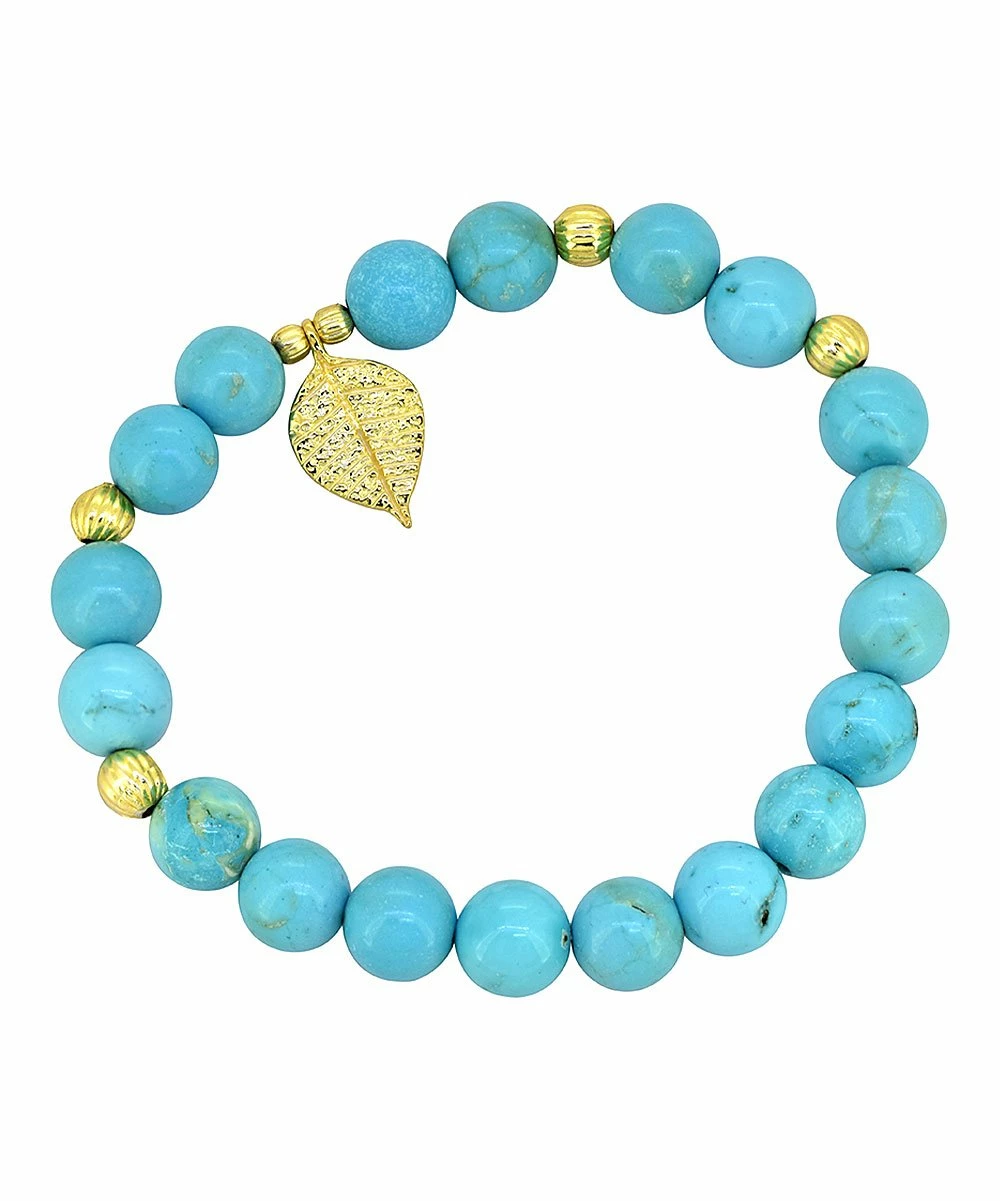 Decorate your wrist with this bracelet featuring turquoise beading and goldtone accents.